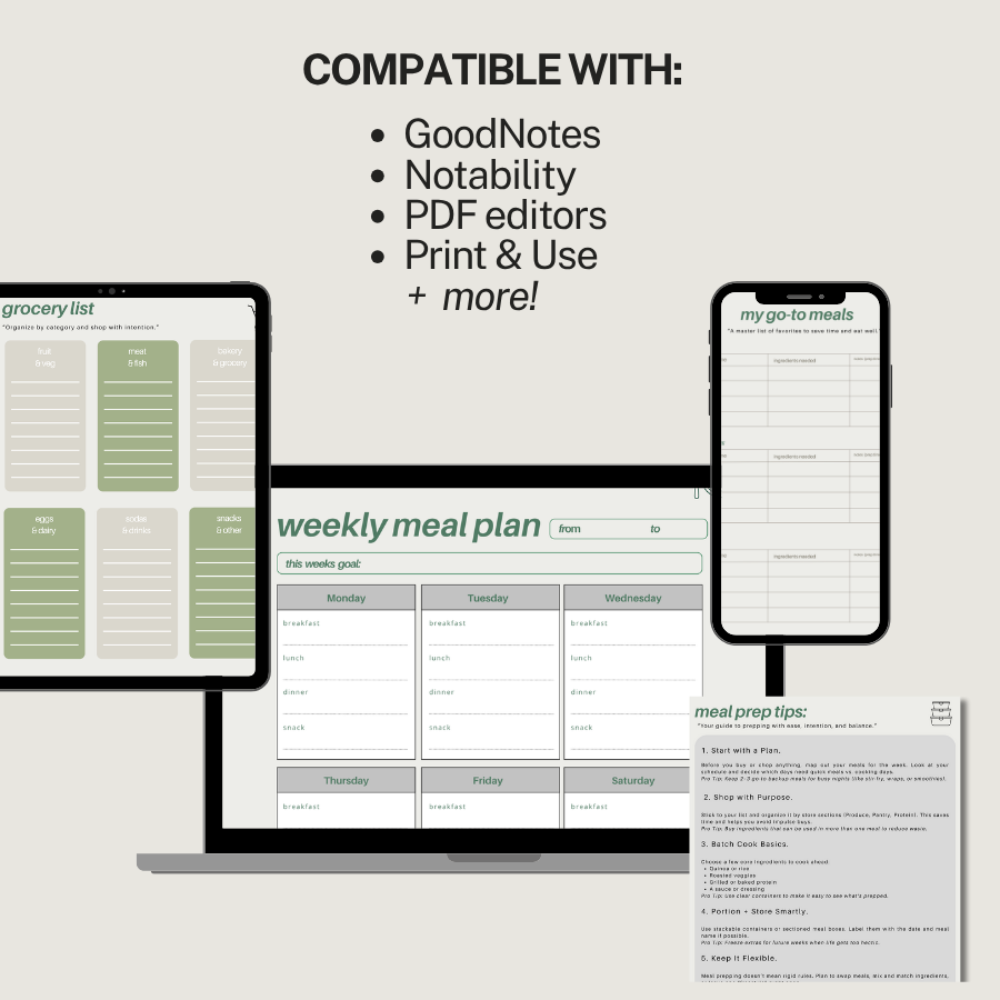 The Meal Planning Toolkit is your all-in-one system to plan, shop, and prep with ease. Thoughtfully designed for real life, this calming, minimalist bundle helps you stay nourished and organized β without the stress.