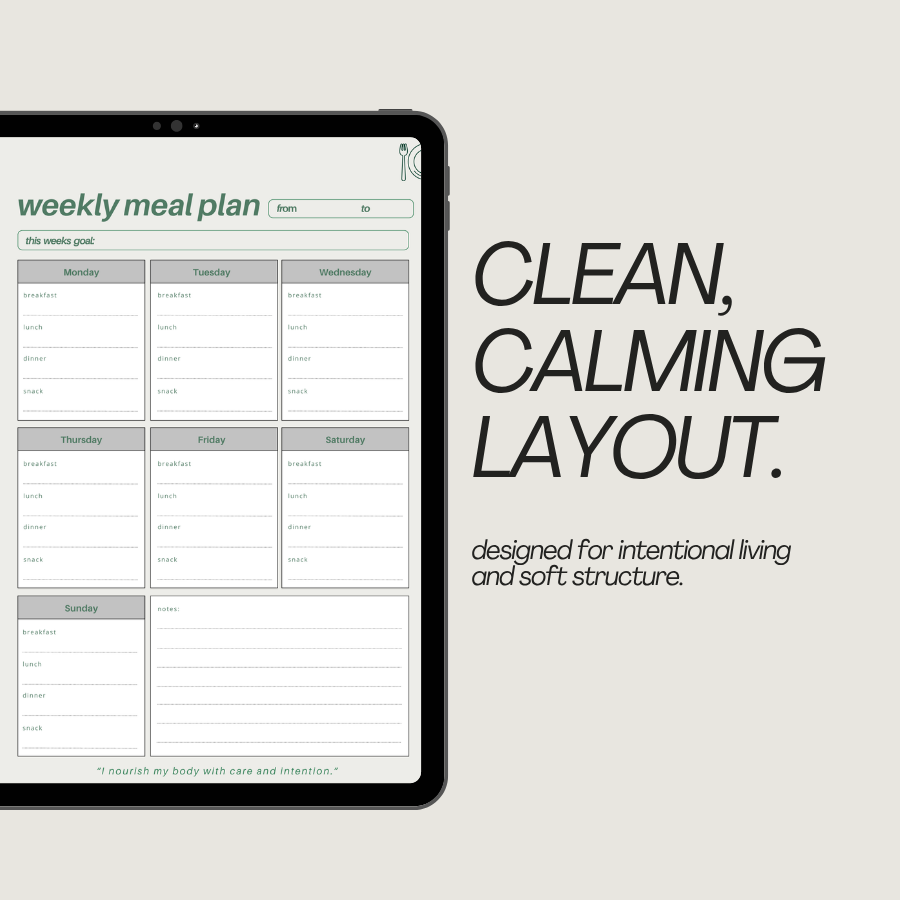 Whether you're trying to eat more intentionally, avoid last-minute takeout, or create structure in your wellness routine, this planner is built to support your lifestyle β not control it.